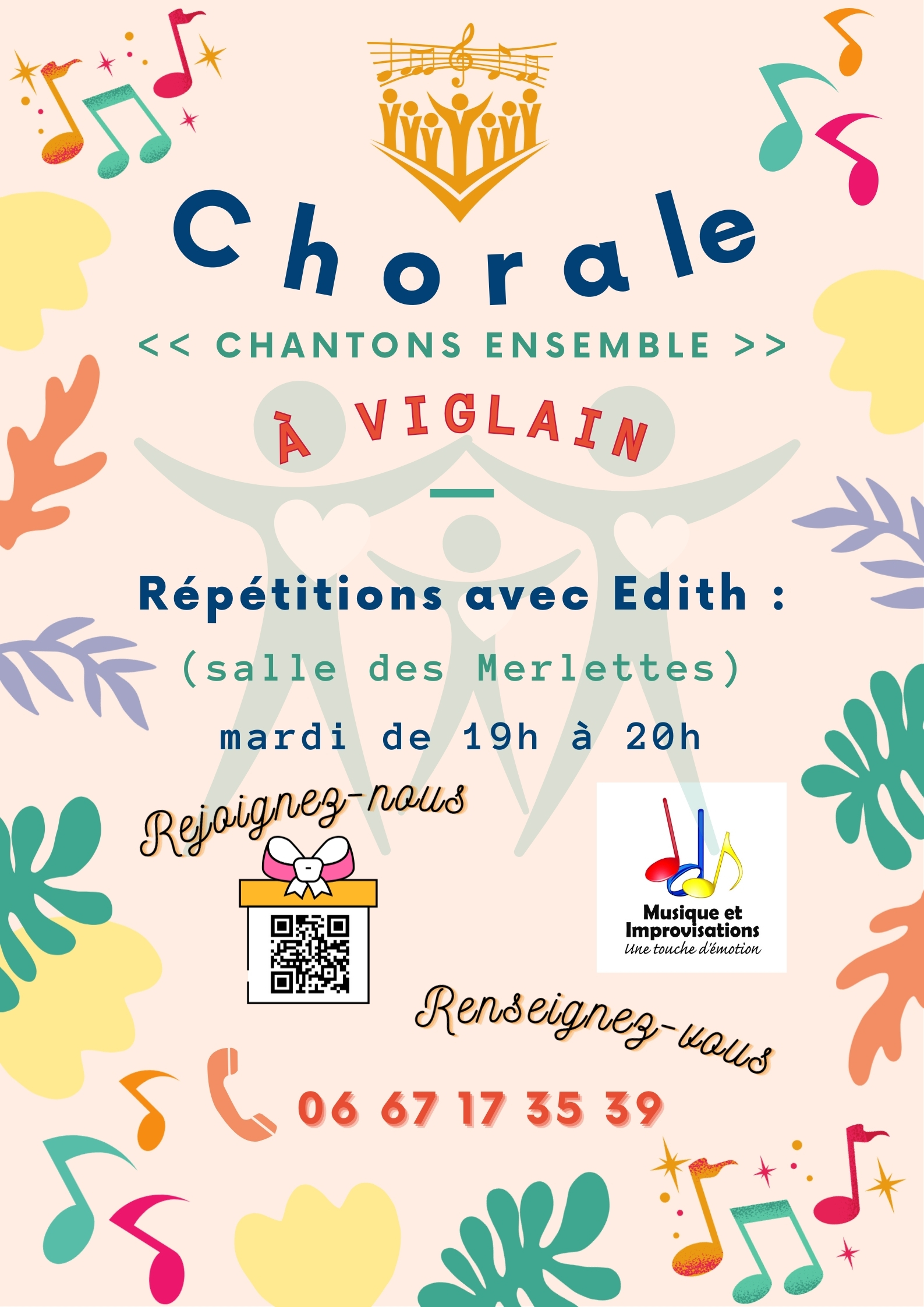 Une chorale pour tous les âges et dans la bonne humeur ! Venez découvrir une ambiance joyeuse où nous "Chantons Ensemble", le mardi de 19h à 20h, salle des Merlettes à Viglain.